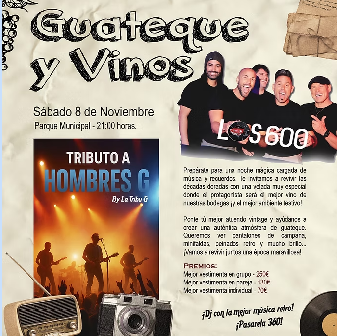 El Ayuntamiento de Santa Brígida, a través de la Concejalía de Desarrollo Rural, invita este sábado, 8 de noviembre, a una noche de Guateque y Vinos a partir de las 21.00 horas el Parque Municipal. Una cita con la buena música y el mejor vino de nuestras bodegas, que se enmarca en el programa Santa Brígida con Vinos 2025.