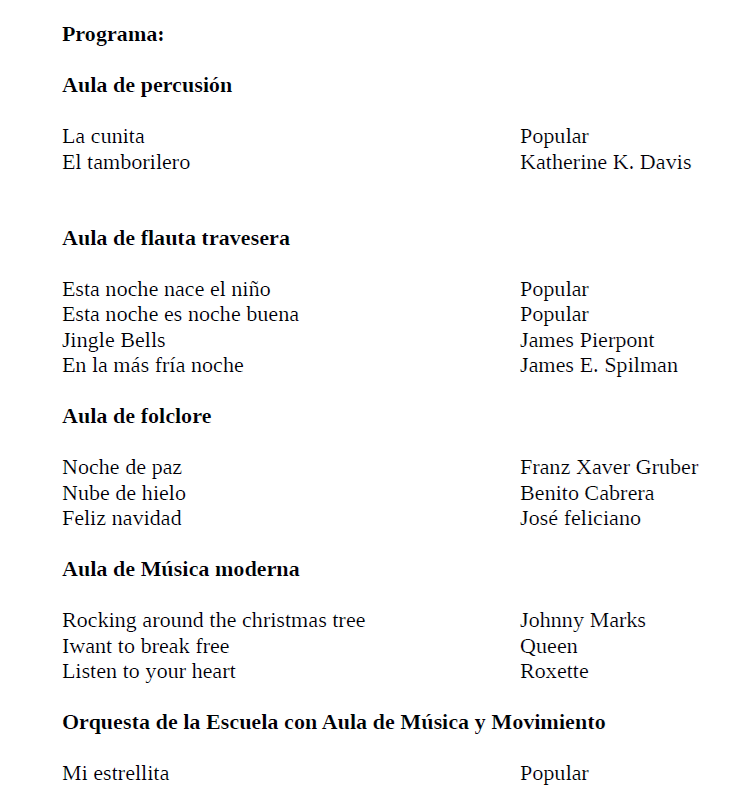 Este concierto constituye una muestra del trabajo realizado por el alumnado durante el primer trimestre del presente curso académico. El repertorio estará centrado principalmente en temas navideños, sin dejar de lado otras propuestas de distintos estilos musicales.