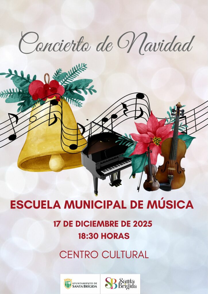 El Ayuntamiento de Santa Brígida, a través de la Concejalía de Educación que dirige Adrián García Armas, invita a la ciudadanía a disfrutar del Concierto de Navidad de la Escuela Municipal de Música bajo la dirección de Tito Santana. La cita es este miércoles, 17 de diciembre, a las 18:30 horas en el Centro Cultural de la Villa.