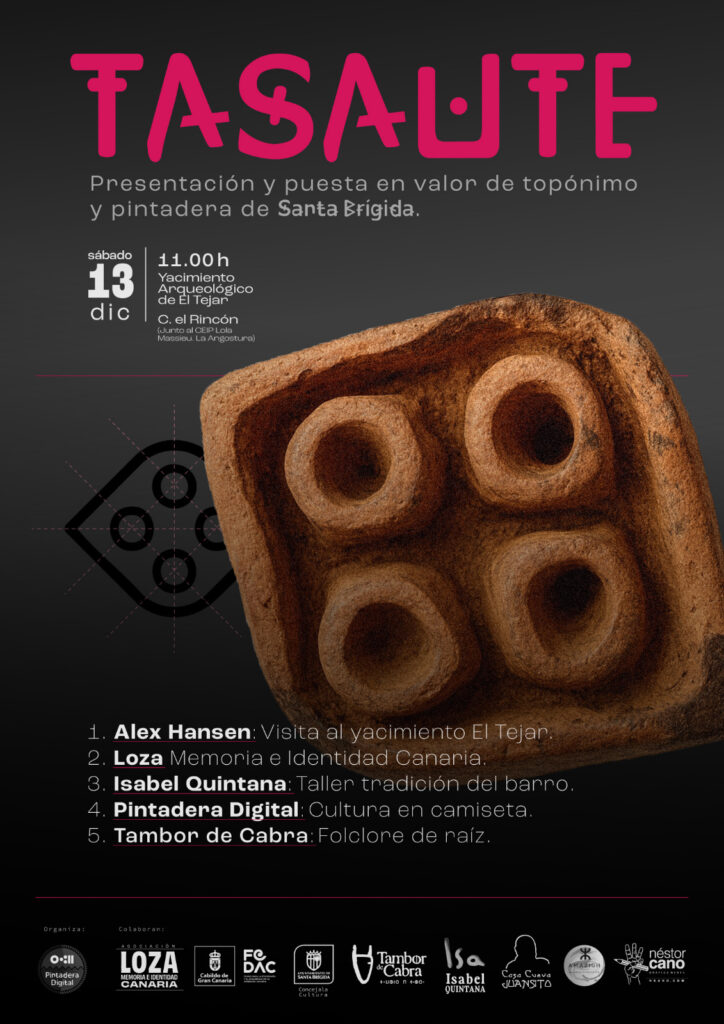 Este sábado, 13 de diciembre a las 11:00 horas, tendrá lugar la presentación y puesta en valor de una de sus pintaderas, Tasaute, en un acto abierto a la ciudadanía. Además, tendremos la oportunidad de “embarrarnos” las manos y, para cerrar, bailaremos un tajaraste al ritmo de Tambor de Cabra.
