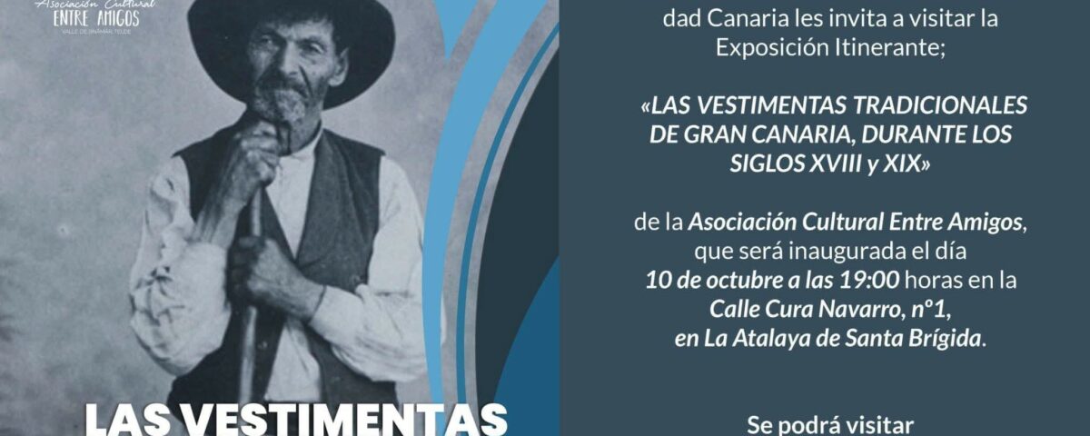 ¿Quiere saber cómo vestían la población grancanaria durante los siglos XVIII y XIX? Pues tiene usted una cita en La Atalaya. El Ayuntamiento de Santa Brígida invita a la ciudadanía a visitar este viernes, 10 de octubre, la exposición itinerante Vestimentas tradicionales de Gran Canaria, de la Asociación Cultural Entre Amigos, un recorrido que rescata la memoria de los atuendos que definieron la historia y la cultura de nuestras generaciones pasadas, y que organiza la asociación Loza Memoria e Identidad Canaria.