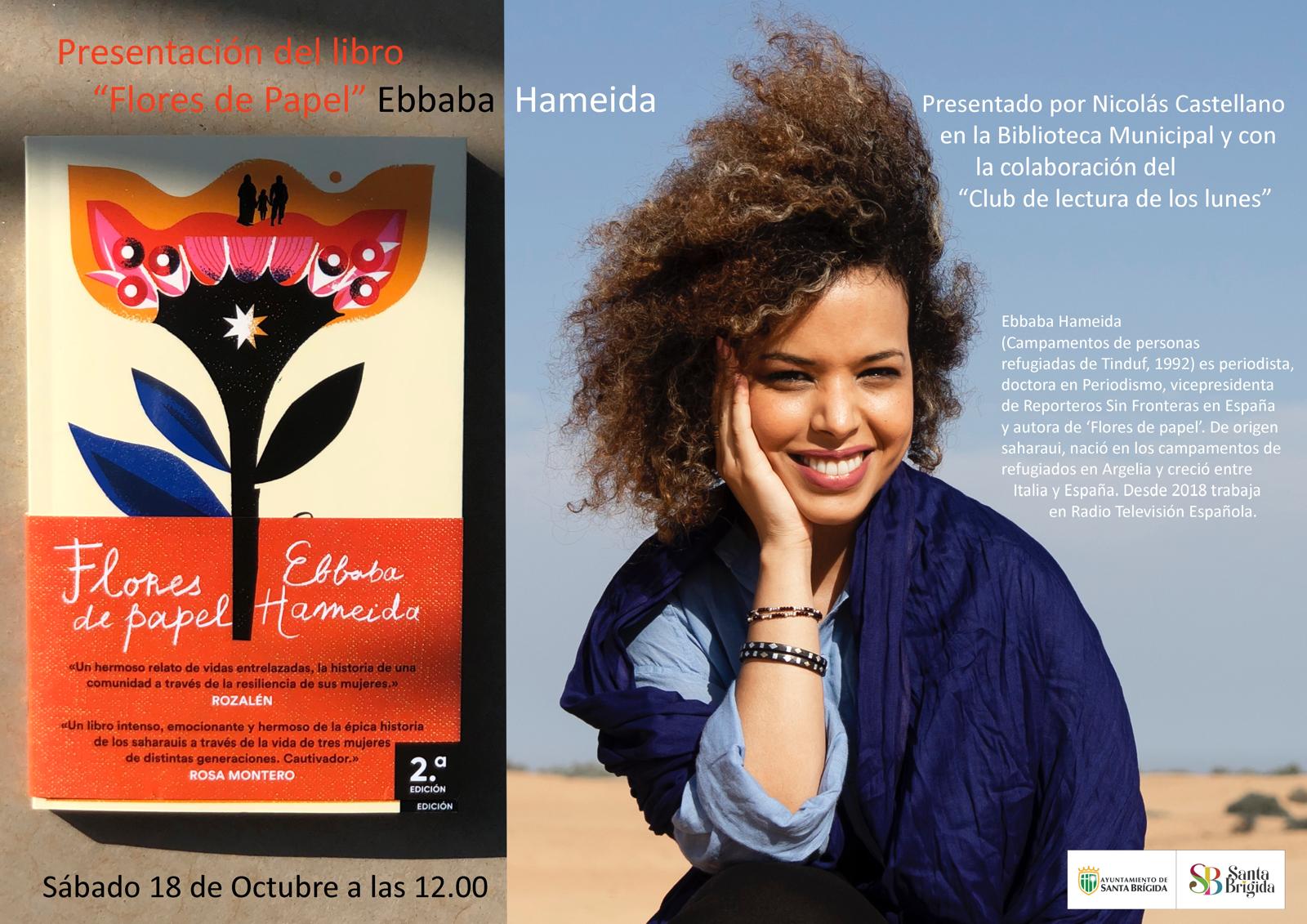 Nacida en los campamentos de refugiados saharauis en Argelia, Ebbaba Hameida es doctora en Periodismo y ha desarrollado su carrera en Radio Televisión Española. En Flores de Papel, su primer libro, narra la historia del pueblo saharaui a través del testimonio de tres mujeres (Aisha, Naima y Leila) en una narrativa intensa y conmovedora que autoras como Rozalén y Rosa Montero han calificado de “hermosa y emocionante”.
