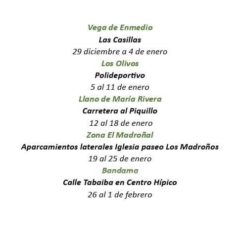 El Ayuntamiento de la Villa de Santa Brígida, a través de la Concejalía de Limpieza y Residuos Sólidos Urbanos que dirige María Sánchez-Fernaud Vega, ha dado a conocer las nuevas ubicaciones de los ecopuntos móviles de este mes de enero.