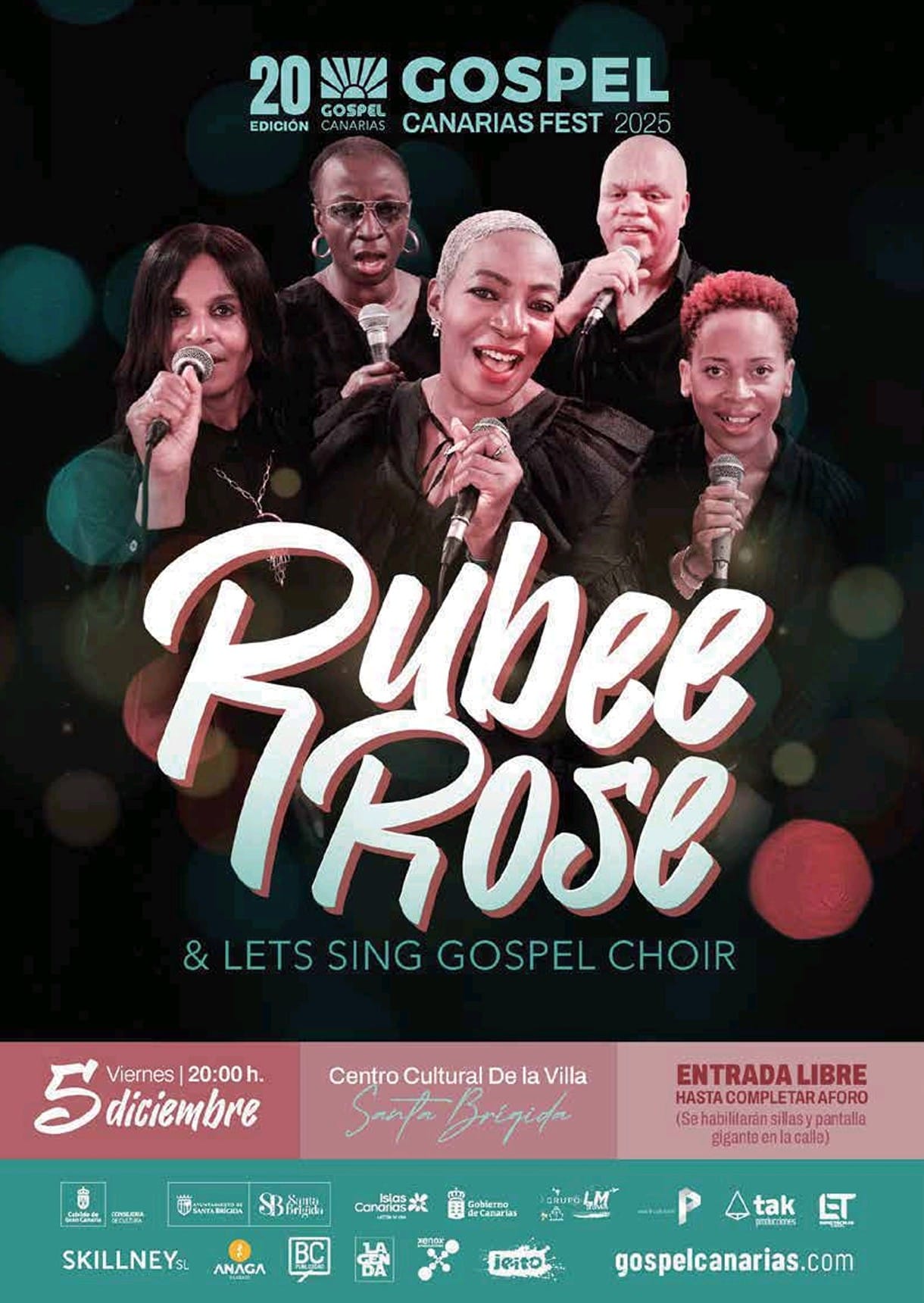 ¿Quieres sentir la alegría, energía y espiritualidad de la música gospel? El Ayuntamiento de Santa Brígida invita a la ciudadanía a disfrutar de Rubee Rose & Let’s Sing Gospel Choir. La cita será este viernes, 5 de diciembre a las 20.00 horas en el Centro Cultural de la Villa.