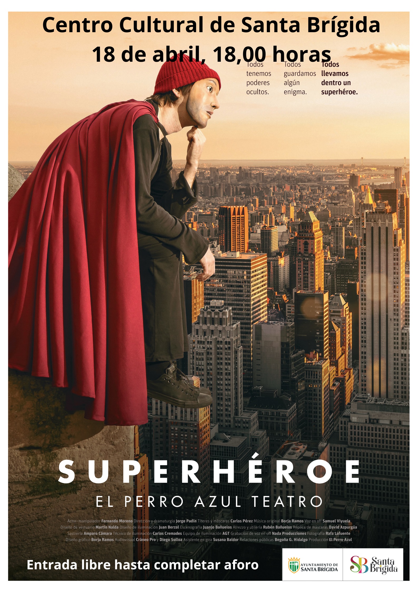 El Centro Cultural de Santa Brígida acoge este sábado, 18 de abril a las 18.00 horas, la representación de Superhéroe, un espectáculo de teatro familiar de la compañía El Perro Azul Teatro, que invita al espectador a descubrir al superhéroe que lleva dentro.