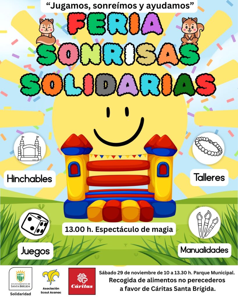 Pero la feria no solo busca generar diversión: también tiene un claro enfoque social. Durante la mañana se llevará a cabo una recogida de alimentos no perecederos destinados a Cáritas Santa Brígida, una acción solidaria que permitirá apoyar a familias del municipio que atraviesan situaciones de necesidad.