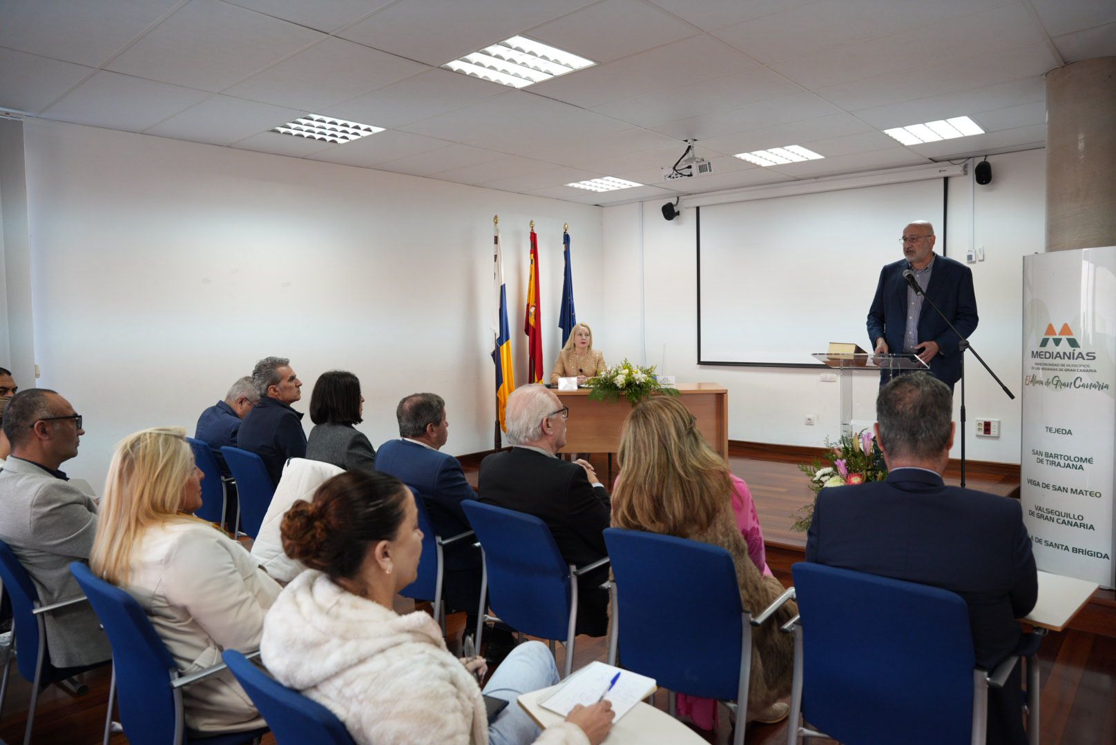 El acto institucional se celebró en la Plaza Contra la Esclavitud Infantil, en Vega de San Mateo, y contó con la presencia de la consejera de Sanidad del Gobierno de Canarias, Esther Monzón; el consejero de Sector Primario y Soberanía Alimentaria del Cabildo, Miguel Hidalgo, el director del Instituto Canario de Vivienda, Antonio Ortega, además de alcaldes y concejales de los cinco municipios que integran la Mancomunidad.