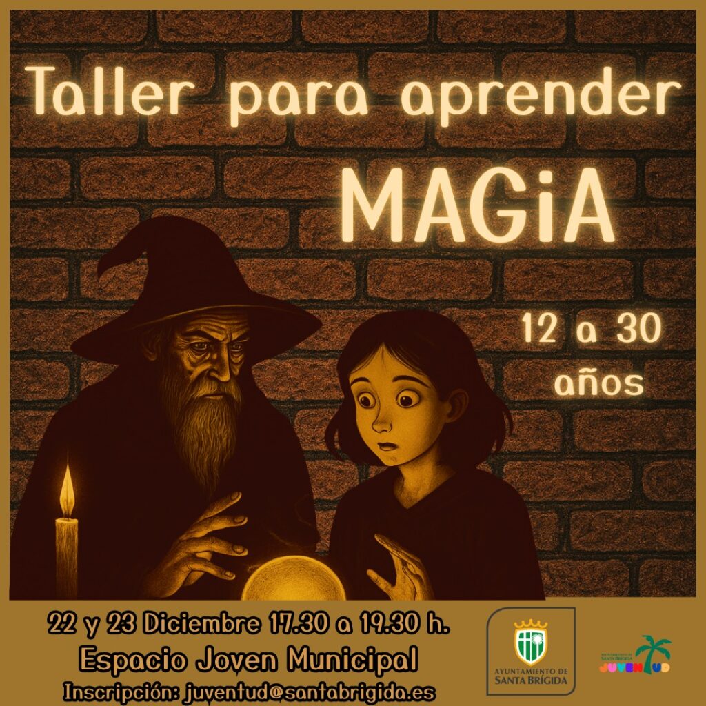 El Ayuntamiento de Santa Brígida, a través de la Concejalía de Juventud que dirige Adrián García Armas, invita a jóvenes de 12 a 30 años al Taller de Magia que tendrá lugar los días 22 y 23 de diciembre, de 17:30 a 19:30 horas en el Espacio Joven Municipal.