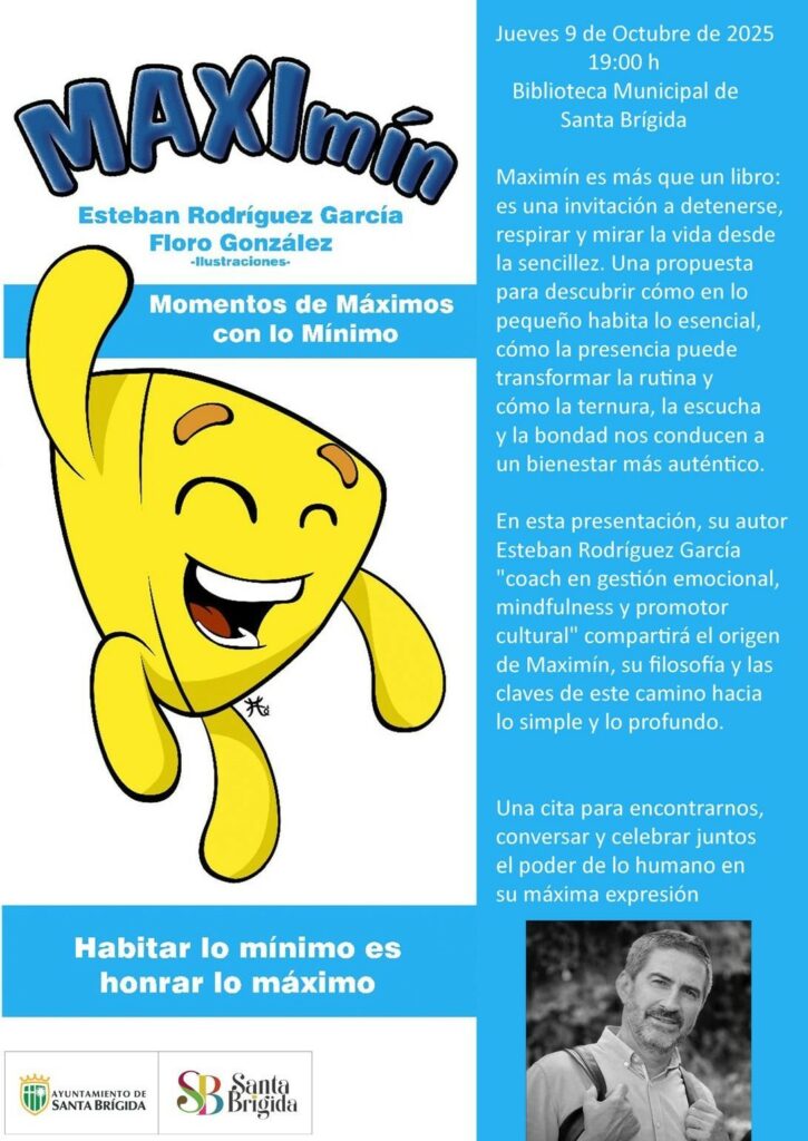 Este jueves, 9 de octubre, a las 19:00 horas, la Biblioteca Municipal de Santa Brígida acoge la presentación del libro Maximín. Momentos de Máximos con lo Mínimo, escrito por Esteban Rodríguez García e ilustraciones de Floro González.