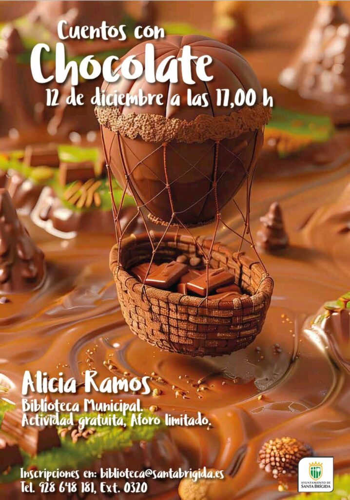 Pase de Cuentos con Chocolate con sabor a Navidad, actividad de animación lectora dirigida al público infantil mayor de 3 años y sus familias a cargo de Alicia Ramos. Reserva plaza escribiendo a biblioteca@santabrigida.es