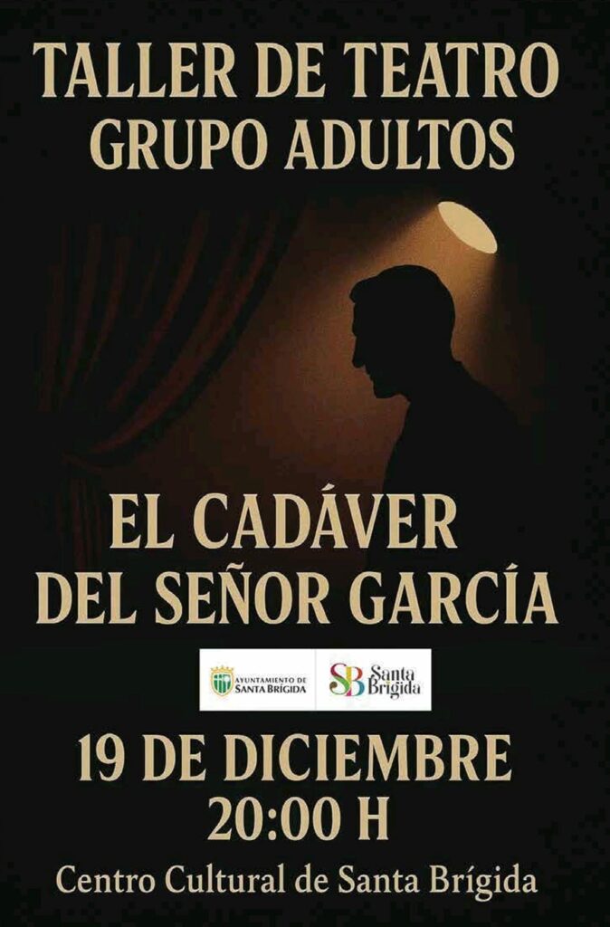 A las 20.00 horas, el Taller de Teatro de Adultos presenta El cadáver del señor García, de Enrique Jardiel Poncela, una comedia disparatada cargada de giros inesperados, situaciones absurdas y personajes singulares.