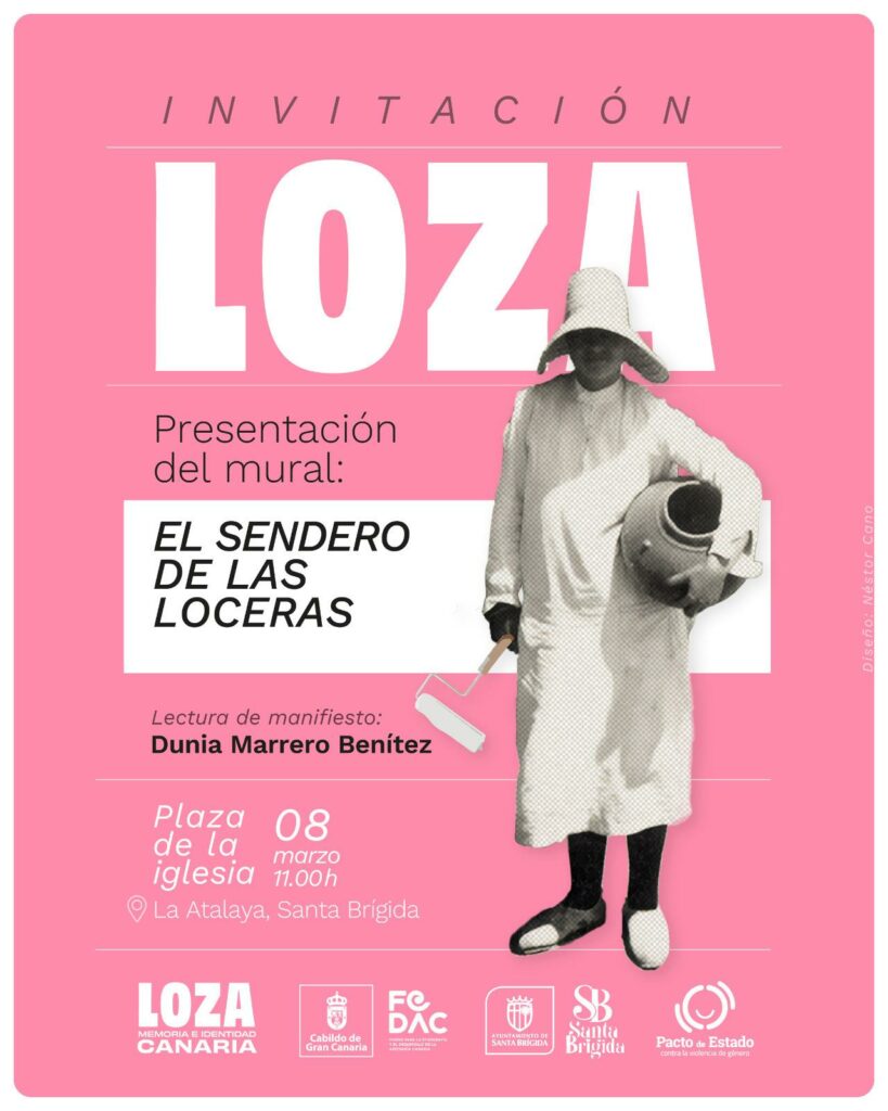 El domingo, 8, se presenta el mural comunitario Las mujeres loceras en la plaza de la Iglesia de La Atalaya, una intervención artística en el espacio público que transformará la memoria femenina local en un elemento permanente de sensibilización y reflexión colectiva. El acto tendrá lugar a las 11:00 horas e incluirá la lectura del manifiesto a cargo de Dunia Marrero Benítez. La iniciativa está organizada por LOZA Canaria.