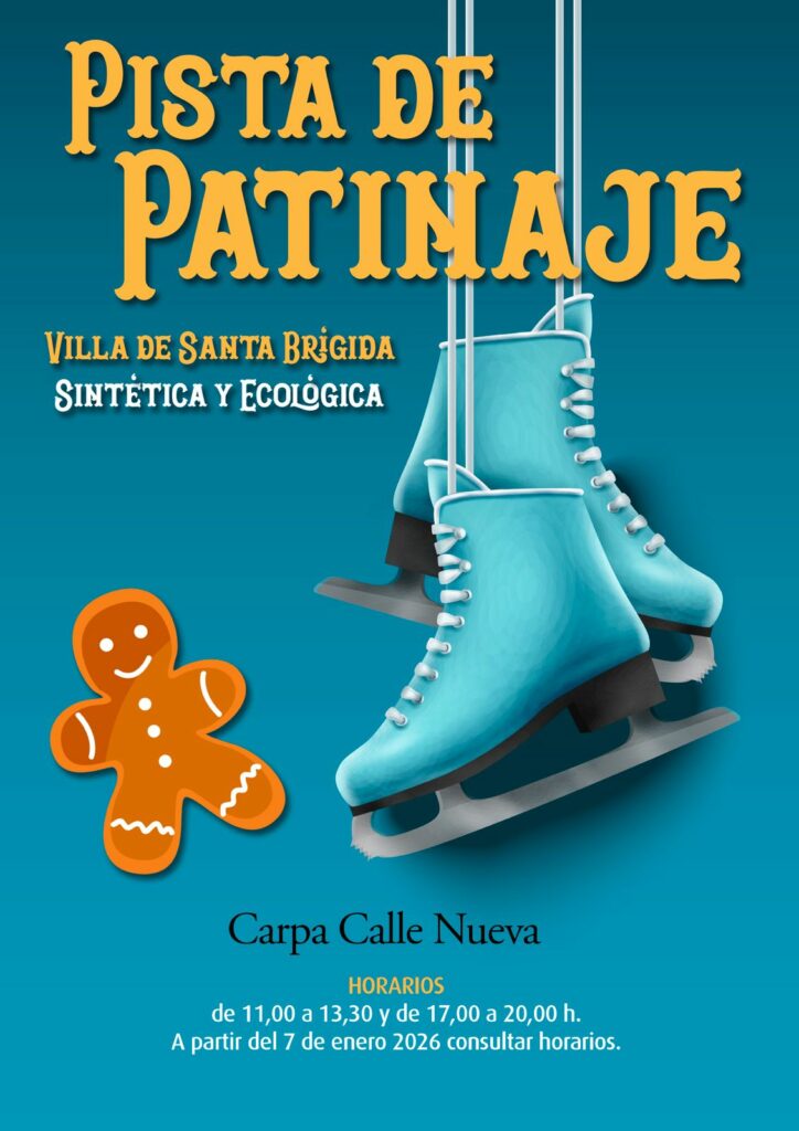 El Ayuntamiento de Santa Brígida invita a la ciudadanía a disfrutar de la pista de patinaje sintética y ecológica, ubicada en una carpa en la Calle Nueva, que estará operativa desde mañana sábado, 20 de diciembre al 11 de enero, en horario de 11.00 a 13:30 horas y de 17:00 a 20:00 horas. Cierra los días 24, 25 y 31 de diciembre y el 1, 5 y 6 de enero.