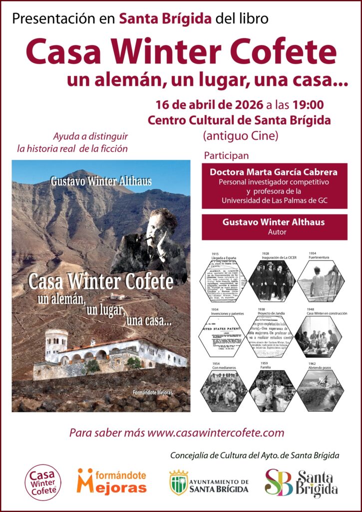 Este jueves, 16 de abril, a las 19.00 horas, el Centro Cultural de la Villa de Santa Brígida acoge la presentación del libro Casa Winter Cofete: un alemán, un lugar, una casa…, obra de Gustavo Winter Althaus, hijo del ingeniero alemán Gustav Winter (1893-1971), propietario de la enigmática construcción.