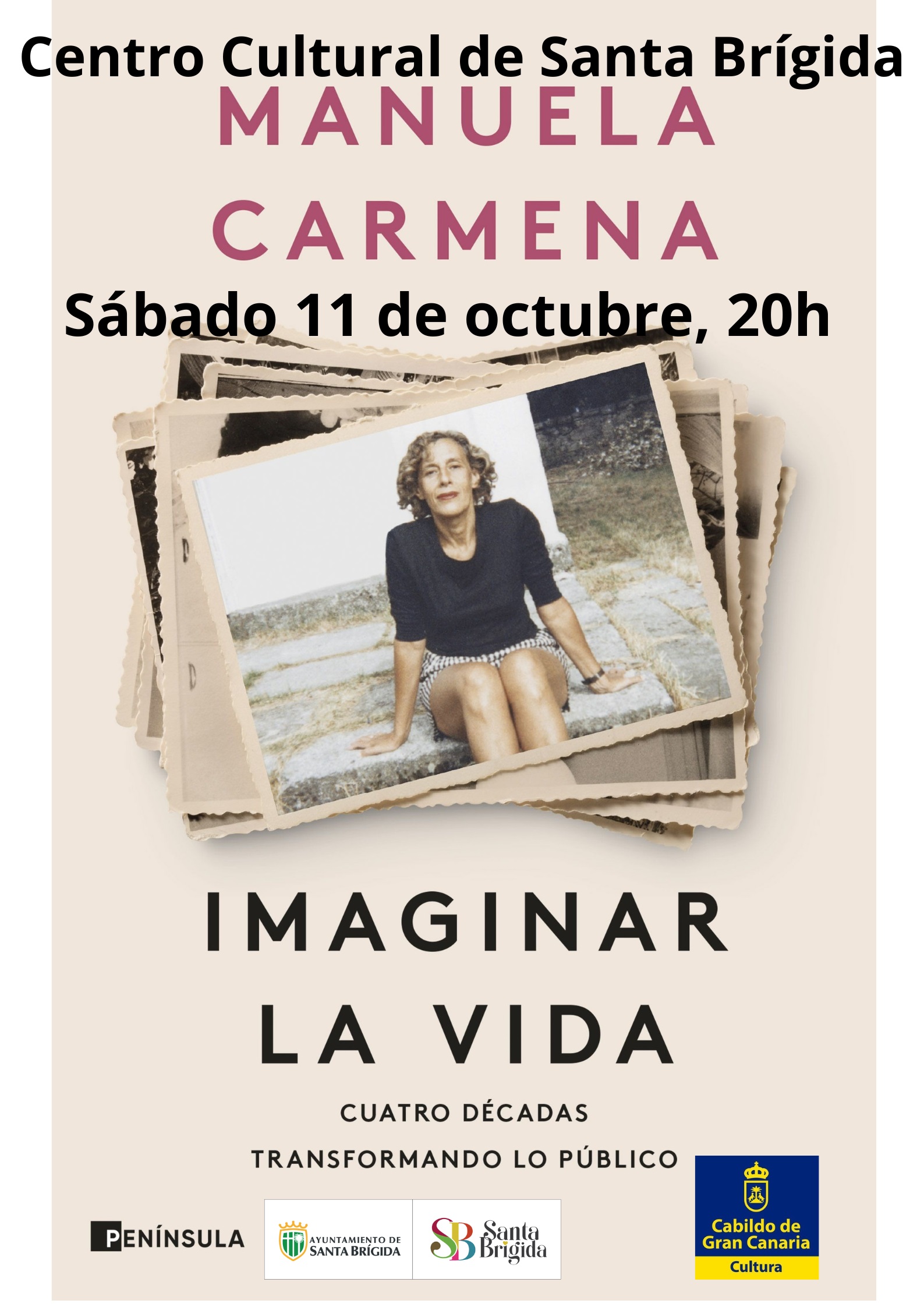 El Ayuntamiento de Santa Brígida, a través de la Concejalía de Cultura que dirige Avelina Fernández Manrique de Lara, invita a la ciudadanía a un encuentro con Manuela Carmena. La jueza y exalcaldesa de Madrid visitará el municipio el próximo 11 de octubre para presentar su último libro Imaginar la vida. Cuatro décadas transformando lo público (Editorial Península).