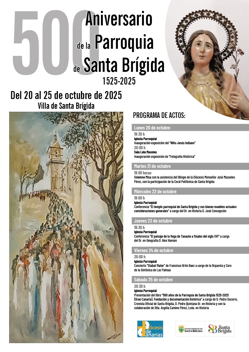 Este 20 de octubre, el Niño Jesús indiano regresa a la Iglesia de Santa Brígida. Su presentación, a cargo del cronista oficial de Santa Brígida, Pedro Socorro, abrirá la semana de actos organizada por el Ayuntamiento satauteño, a través de la Concejalía de Patrimonio Cultural e Histórico que dirige Avelina Fernández Manrique de Lara con motivo del 500 aniversario de la parroquia. A las 19:30 horas se dará a conocer la pieza a la ciudadanía, una delicada escultura de madera policromada del siglo XVIII, propiedad de la Casa de Colón, que permanecerá expuesta en la Iglesia hasta el 26 de octubre